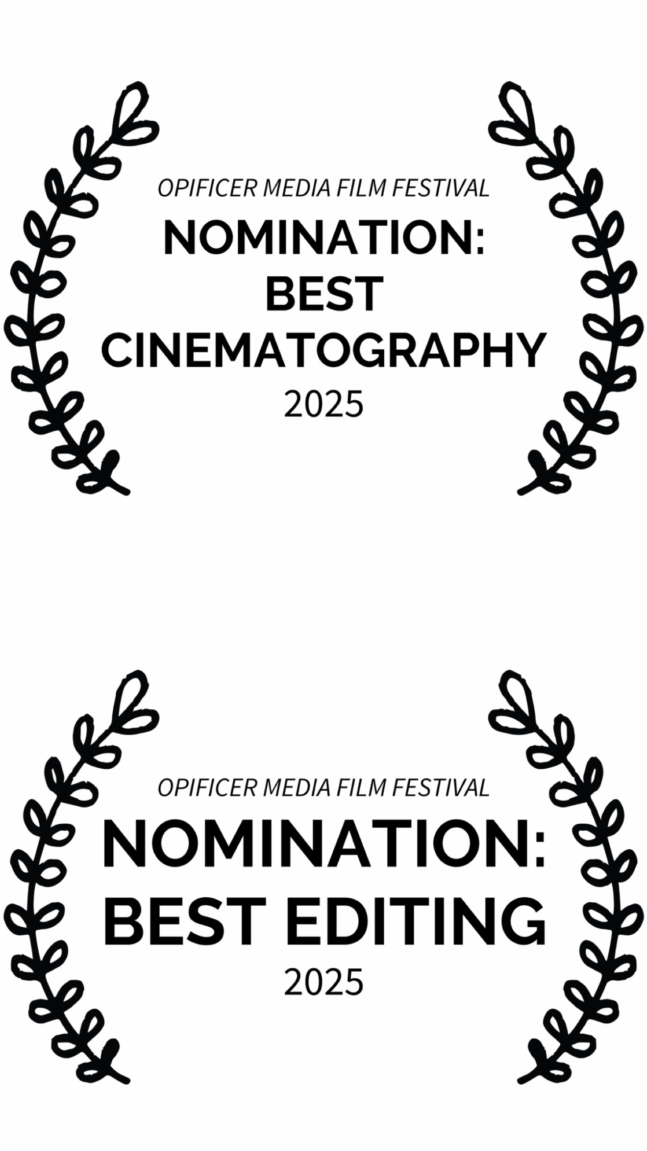 Official selection with nominations for Best Cinematography and Best Editing at the 2025 Opificer Media Student Film Festival.